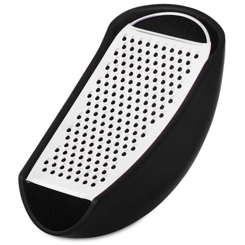 It doesn’t belong in your office: it’s meant to go on your table! Turn it upside down and underneath, you’ll find a little stainless steel grater. Use the Parmenide to grate your cheese – the plastic outer shell is actually really easy to grip. The cheese will gather inside the Parmenide’s shell…but that’s okay, because the Parmenide actually works as a cheese dispenser, too. Turn it upside down, give it a little shake, and spread delicious cheese all over your meal!