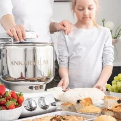Make large amounts of dense sourdough bread, chunky oatmeal raisin cookies or light delicate meringues with the versatile Ankarsrum Original 6230 Model Stand Mixer. The mixer includes a 7L (8-quart) stainless steel bowl, dough hook, roller, scraper, spatula, cookie beaters, 3.5L double whisk bowl assembly, dust cover, removable power cord, instructional DVD & owners manual. Expand the functionality of your stand mixer by turning it on its side & adding one of the many available attachments sold separately like the grain mill, juicer, meat grinder, pasta discs, cookie extruder, strainer & more!