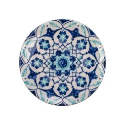- Intricate medallion design with subtle floral accents in vibrant shades of blue &white