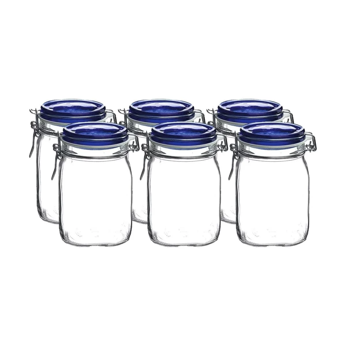 Bormioli Rocco 1L Swing Top Fido Canning Jar – Blue Lid (6-pack) Features: