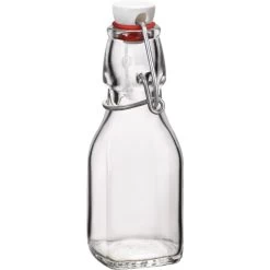 High-quality Italian glass and a classic design makes this 100-pack of Bormioli Rocco 4.25oz Swing Top Glass bottles a beautiful solution for your homemade wedding favors or gift baskets, or for simply storing your handcrafted infused vinegars, rich syrups, and flavored liqueurs. The hermetically sealing swing-top lid creates a leak-proof seal for storage or travel, and the sturdy glass construction makes the bottles both durable and practical. Bottles are dishwasher safe, but wire swing-top should be hand-washed.