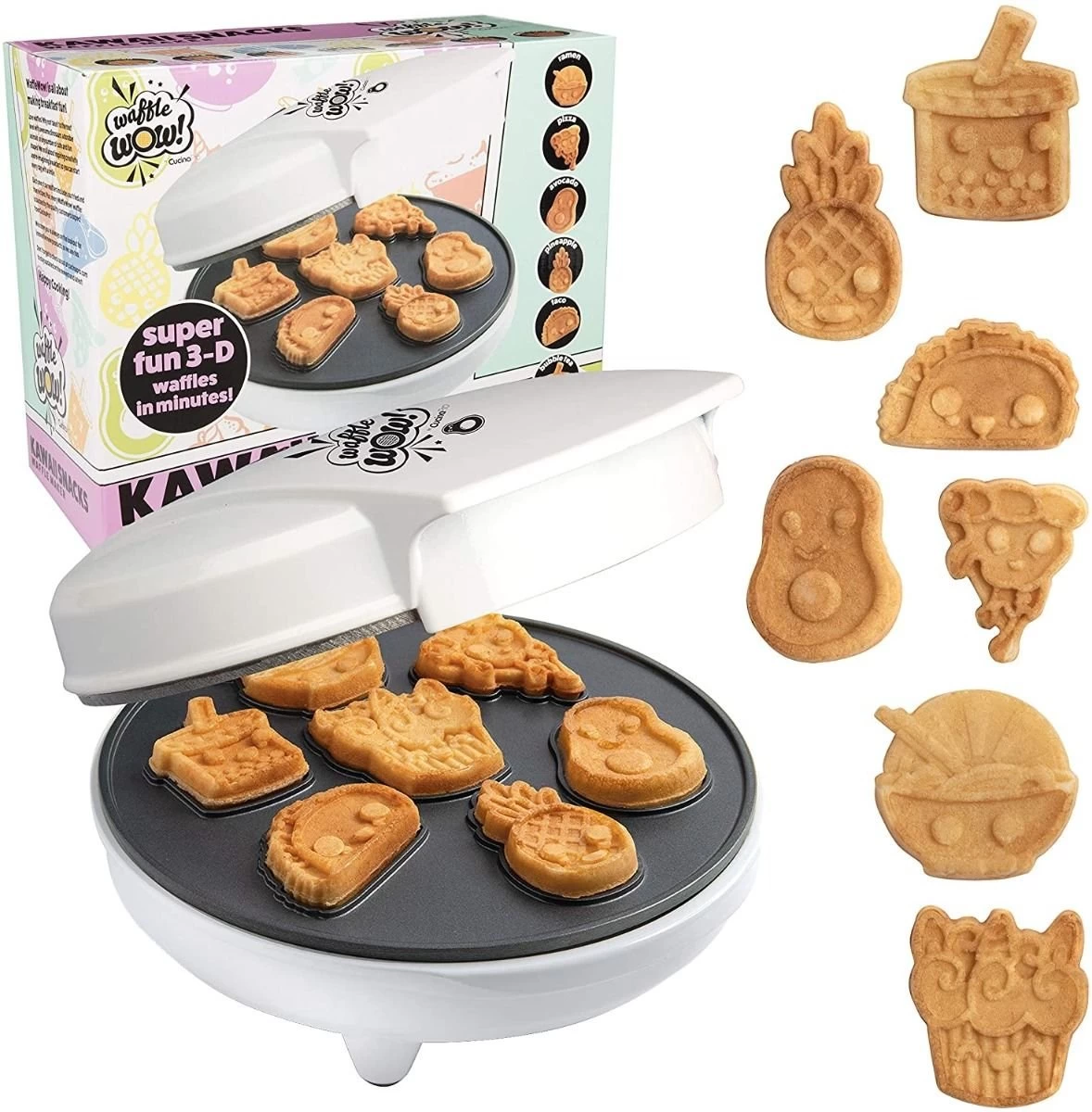Make a charming breakfast that will thrill adults and children alike with the CucinaPro Kawaii Snacks Waffle Maker. This waffle maker is designed with 7 unique molds, including a ramen, pizza, avocado, pineapple, taco, bubble tea, and unicorn shake. Each mold is designed to create crisp, clear designs, not vague blobs like other waffle makers. The unique heating elements will cook quickly and evenly, so you can whip up your mini waffles in minutes. The interior of this waffle maker is non-stick, so it easily releases waffles so you avoid messes. Whip up a breakfast your family will never forget with the CucinaPro Kawaii Snacks Waffle Maker, get yours today!