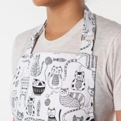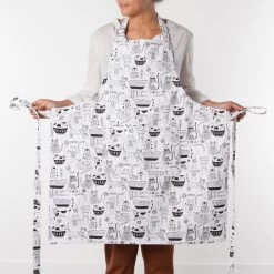 Make a statement in your kitchen that purr-fectly represents your style with the Danica Jubilee Chef Apron in Purr Party Cats. Durably constructed and bar-tacked in stress points, this apron will be a long-standing companion during your baking and cooking tasks, while adding a touch of whimsy to your kitchen. This chef’s apron is the choice addition to any cat-lovers home with the adorable illustrations that show feline characters sauntering, snoozing, and sitting about greyscale threads. Made from 100% cotton and machine wash-safe, the Danica Jubilee Chef Apron in Purr Party Cats is a simple way to make your feline friends and cat-loving cohorts feel at home in your kitchen.