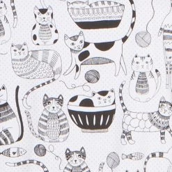 - Purr Party Cats design features hand-illustrated feline friends in various positions for a whimsical touch to your kitchen