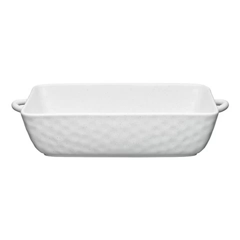 The organic-shaped serving pieces of the Speckle Milk range feature a soft speckle and dimpled tactile finish. With a combination of organic shapes and dimpled surfaces, the Speckle range collection embodies the kind of provincial charm that belongs in a countryside cottage. Â