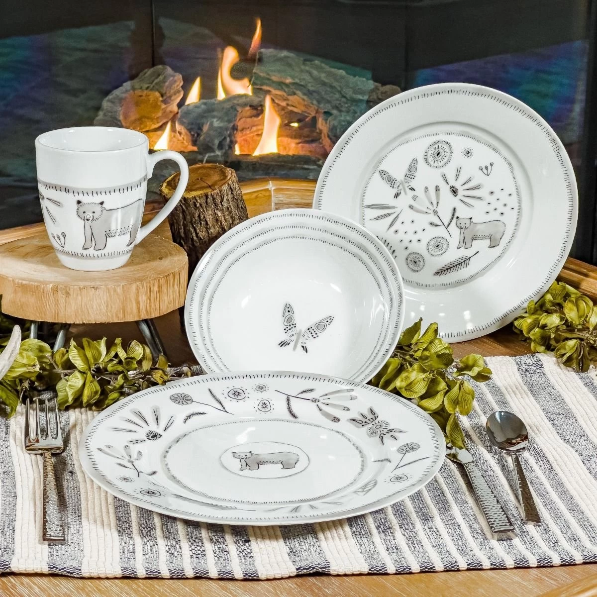 Bear With Me 16-Piece Dinnerware Set With Mugs Features: