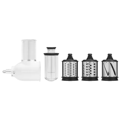 Slice, dice, and shred your ingredients with ease using your KitchenAid Stand Mixer and the Refurbished Fresh Prep Slicer/Shredder Attachment. The Fresh Prep Slicer attaches to the universal hub on the front of your KitchenAid stand mixer and is compatible with all mixer models. Designed to help you prep almost any meal, this attachment comes with three interchangeable blades; a slicing blade, coarse shredding blade, and medium shredding blade. Make the prep work for your next meal a snap, get the Refurbished Fresh Prep Slicer/Shredder Attachment from KitchenAid today!