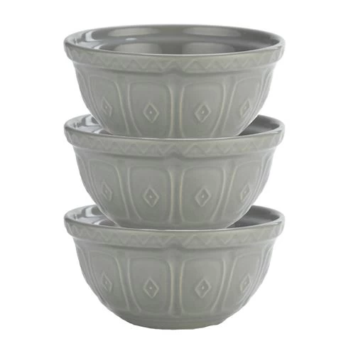 This chip-resistant earthenware Cane Mixing Bowl Set retains the Mason Cash’ charm with a beautifully embossed exterior, which cleverly allows you to also grip the sides.