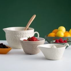 Serve steamed vegetables, mixed fruit, and creamy pudding with Mason Embossed Owl Serving Bowl! This 30oz bowl is crafted with chip-resistant earthenware for durability that can stand up to daily use. The protruding rim of the basin allows a lid to be tied and maintained throughout steaming. Because of the stoneware’s thermal resistance, you can use the bowl for baking, serving, and refrigerating without the hassle of using multiple dishes. Mason Cash’s Embossed Owl Serving Bowl is ideal for family dinners and special events.