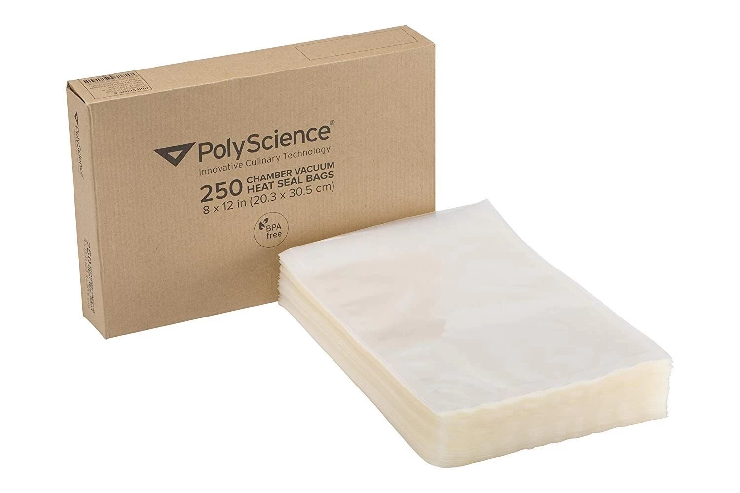 Keep healthy, nutritious foods longer for you and your family with PolyScience Chamber Vacuum Sealer Cook-In Bags. These bags are microwavesafe, BPA-free and ideal for freezing, thawing, or cooking in your Sous Vide Machine. With this pack of 8” x 12” Chamber Vacuum Sealer Bags, try vacuum sealing a steak and marinade for the flavorful results of an all-night marinade cycle. Enjoy fresh, wholesome food longer with PolyScience Chamber Vacuum Sealer Bags.