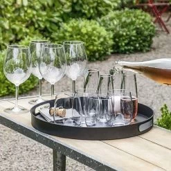 - Tritan (Plastic) stemless flute glass is a durable option for any entertaining environment
