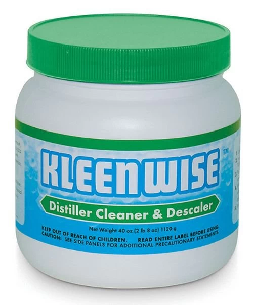 Keep your Waterwise Distiller boiling tank whistle clean with the Kleenwise Cleaner & Descaler. The special formulation of descaler and cleaner is for all Waterwise Distillers Series. Follow the manufacturer directions for use cleaning and descaling your Waterwise Distiller for the best lifetime operational years. One 40 ounce jar lasts up to one year which makes this a very cost effective maintance for your Waterwise Distiller system. Since the cleaner and descaler is environmentally safe, biodegradable, phosphate-free, you will be happy to use this efficient, quick cleaning product. The Waterwise Distillers Kleenwise Cleaner & Descaler. Get rid of the dried powdery gunk that the Waterwise Distiller removes from your water with the Kleenwise Cleaner & Descaler.