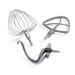 - Includes: 7-quart bowl, flat beater, whisk, dough hook, pouring shield